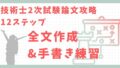 まずは、過去問(5年分程度)と過去問の解答例(最新年)について分析します。解答例は、新技術開発センターの復元論文集(5,000円)等の最新年版を購入してください。また、通信講座「技術士ロックオン」等でも復元論文が提供されています。