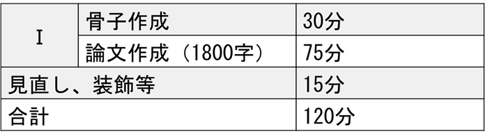 時間の配分も確認しておきましょう。平均的な記述速度は、一文字2.5秒程度といわれています。これを参考に試算すると目安はそれぞれ次のようになります。