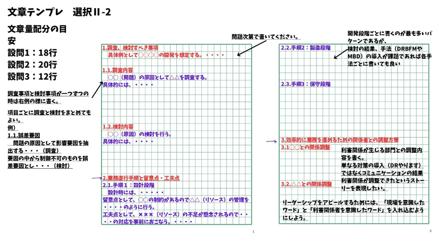 選択Ⅱ‐2の問題はいくつかパターンがあるためすべての問題にそのまま使えるわけではありませんが、参考にできる解答論文パターンのテンプレートを紹介します。
