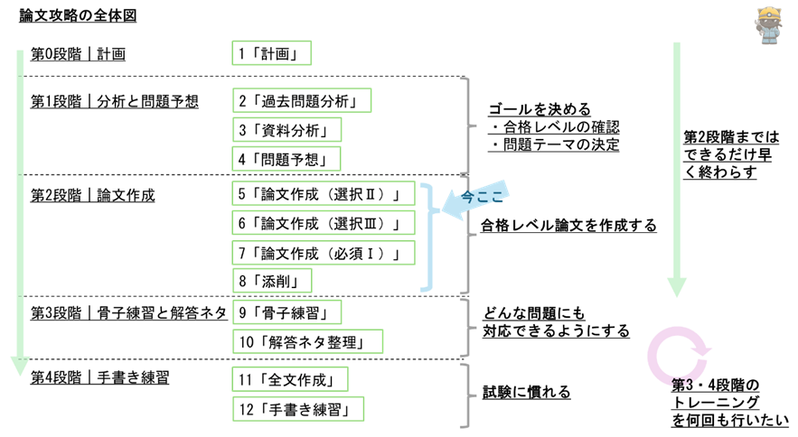 注)本連載では、2次試験の中の論文対策のみについて触れています。「試験申込書の作成方法」や「口頭試験対策」、「試験対策講座の比較」についても別記事で解説していますのでよろしければご参考にしてください。