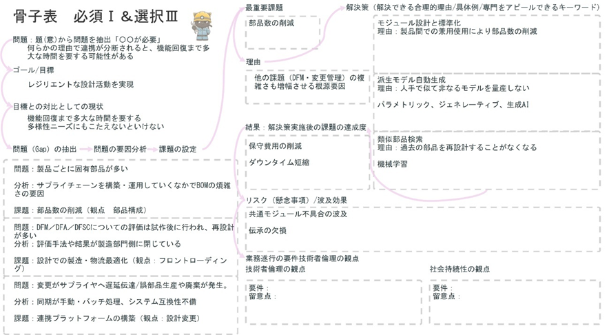 ③問題点を分析し機械部門(機械設計)の技術者としての課題を3つ設定する。