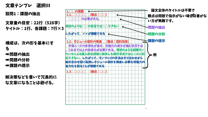 本日は、第6ステップ「論文作成(選択Ⅲ)」について解説いたします。第4ステップで決めた予想問題の一つを例にして論文を作成します。