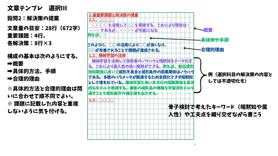 選択Ⅲの解答は、骨子をしっかり作ってから書き始めましょう。